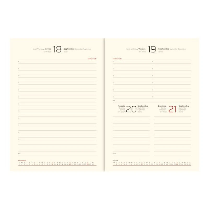 - Las Agendas encuadernadas cuentan con un sistema de apertura que permiten escribir con comodidad, manteniendo la hoja plana cerca de la encuadernacion. Ademas estan cocidas para garantizar durabilidad.