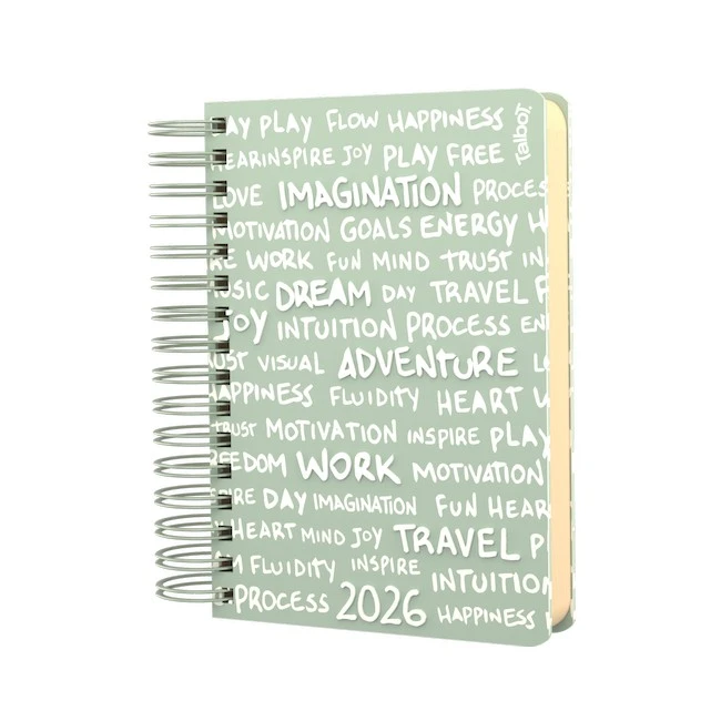 - Agenda 2026 Diaria Cartera n°6, con espiral. - Tapa Dura, bajo relieve, laminada, sectorizada UV, con elastico. - Medidas: 10,8 x 15,4cm. - Paginas: 296 - Papel obra 75grs - Interior 4 Colores. - Variedad de modelos para adaptarse a tus necesidades. - Doble espiral - Elastico de 9mm. - Extra 2 planchas de sticker + Sobre de PVC -