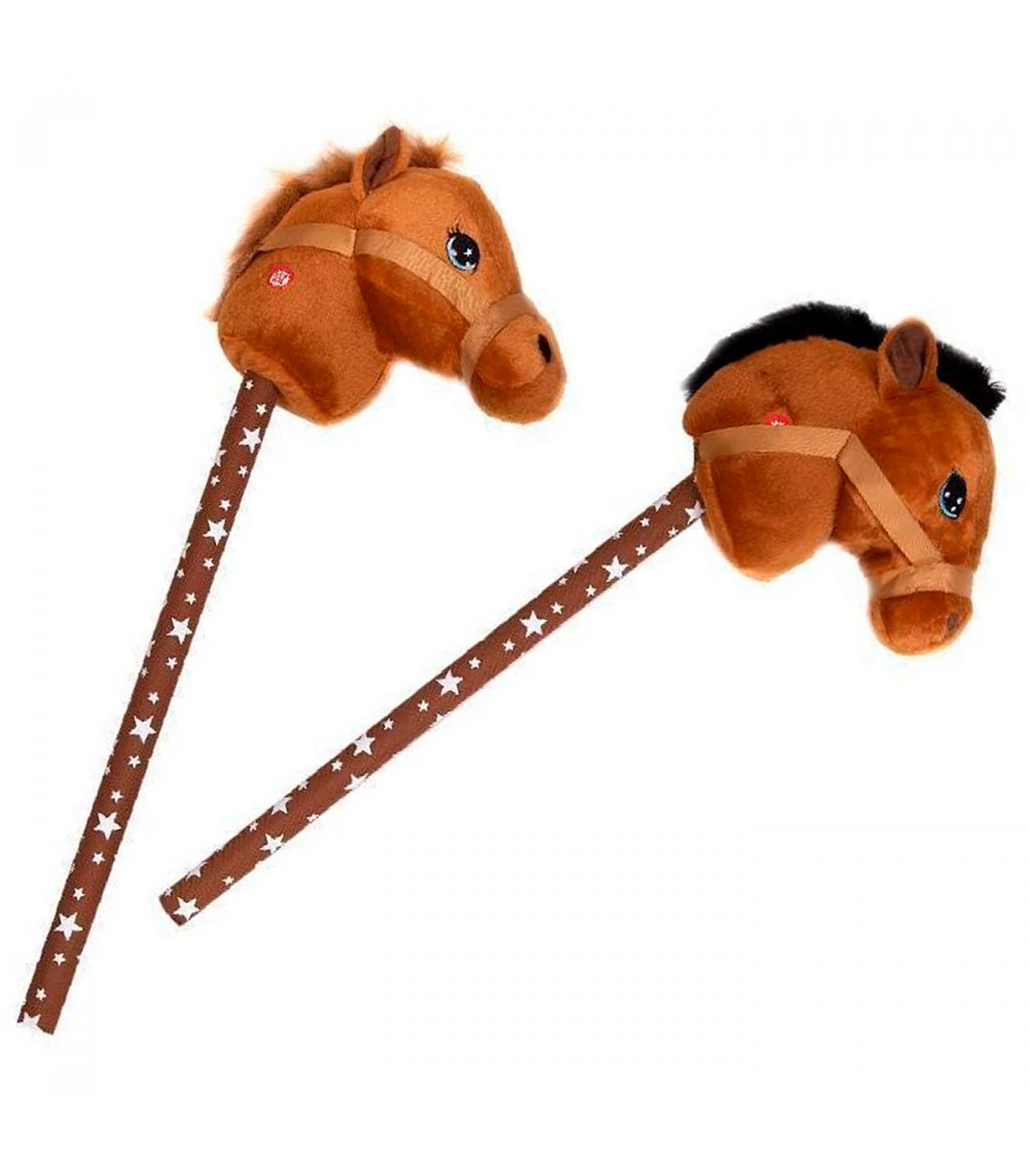 - Color aleatorio: crin marrón o negra. Mide aprox. 66 cm de largo (el palo mide 47 cm) y funciona con pilas (incluidas)