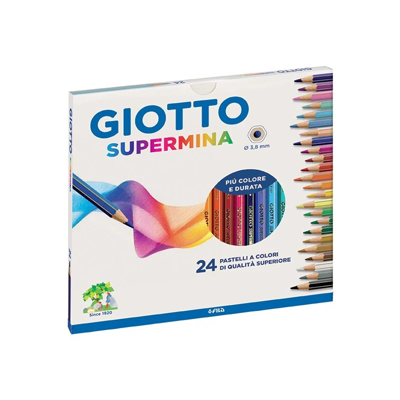 24 Lápices de colores marca Giotto modelo supermina, cada lápiz está diseñado con una mina súper resistente que garantiza una larga duración y un rendimiento excepcional.