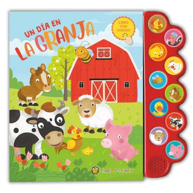 LIBRO CON 10 botones con los sonidos de un día en la granja, que interactúan con la historia de cada libro. Además, datos simples y curiosos para los más pequeños.