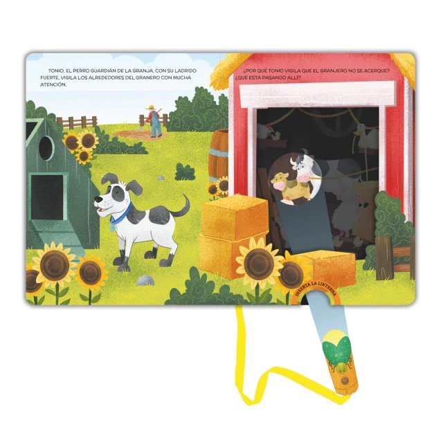 Esta colección única de libros interactivos incluye una linterna de cartón que permite a los niños descubrir escenas ocultas en cada página. Los pequeños lectores pueden iluminar partes del libro para revelar divertidas y misteriosas actividades que ocurren en las diferentes escenas. Cada libro culmina con una emocionante doble página que incluye un pop-up, brindando una sorpresa tridimensional que refuerza el impacto visual de la historia.