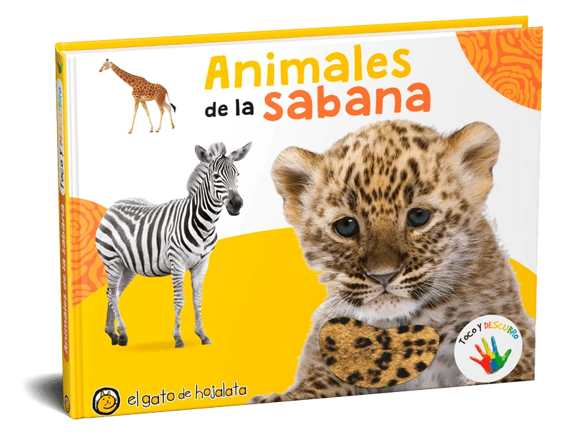 Cuatro libros con imágenes reales de animales y distintas texturas en cada página, ideales para niños curiosos que aprenden mientras juegan. Letra imprenta mayúscula.