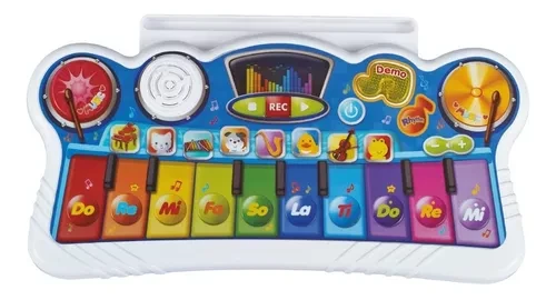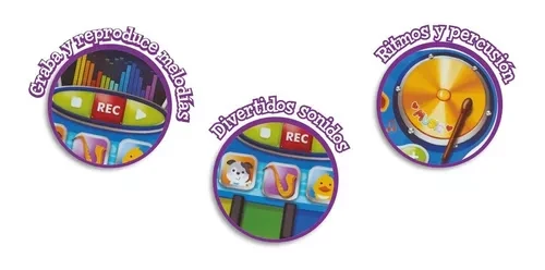 Este instrumento musical infantil es una mezcla de teclado y percusión, completamente digital. Permite grabar y reproducir la música creada, proporcionando una experiencia interactiva y educativa.