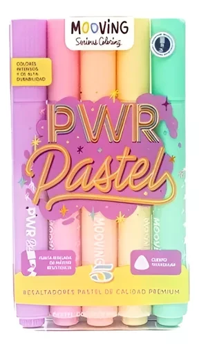 SET RESALTADORES PASTEL X 5 COLORES COLORING PWR PASTEL MOOVING